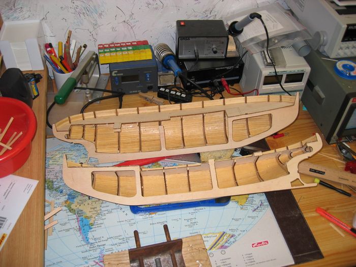 Es ist so weit, beide Rumpfhälften können nun verklebt werden, das Modell nimmt langsam Form an.