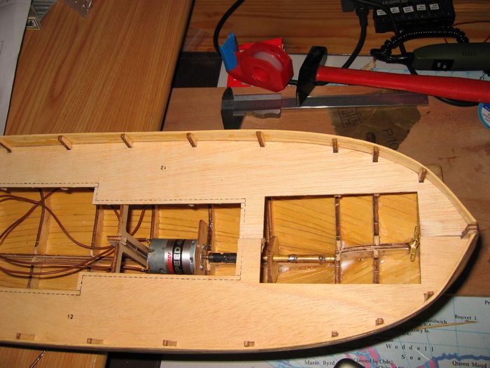 Als Motor kommt ein Graupner Speed 400 zum Einsatz. Der Motor fand sich noch in der Grabbelkiste und passt ganz gut zu dem Modell. Bei den späteren Fahrversuchen stellte sich heraus, dass das Fahrbild bei Halbgas hervorragend ist, bei Vollgas fährt das Modell viel zu schnell. Anders ausgedrückt: Es sind genug Reserven vorhanden :-)