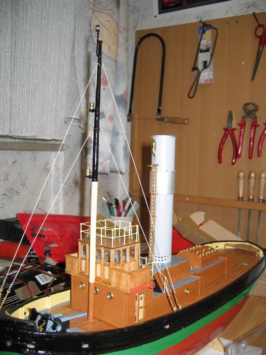 Bald ist das Modell fertig, hier noch mal ein Bild mit dem eingepassten, aber noch nicht lackierten Schornstein.