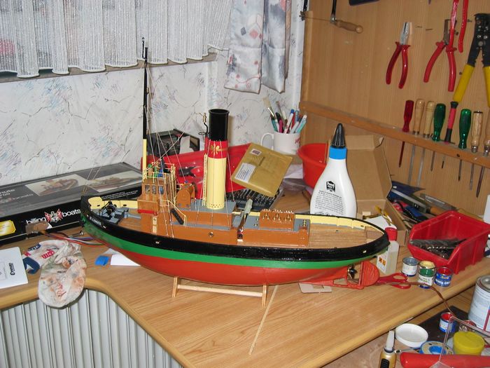 Der Schornstein ist nun lackiert und fertig eingebaut. Jetzt fehlen nur noch Kleinigkeiten.